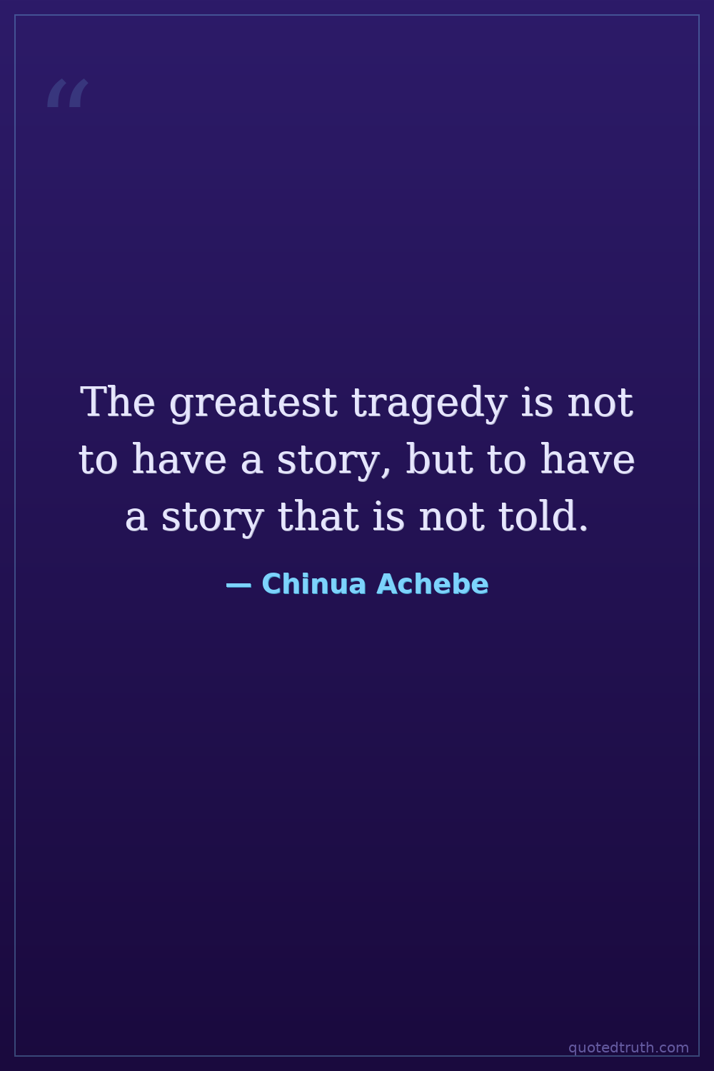 The greatest tragedy is not to have a story, but to have a story that is not told.