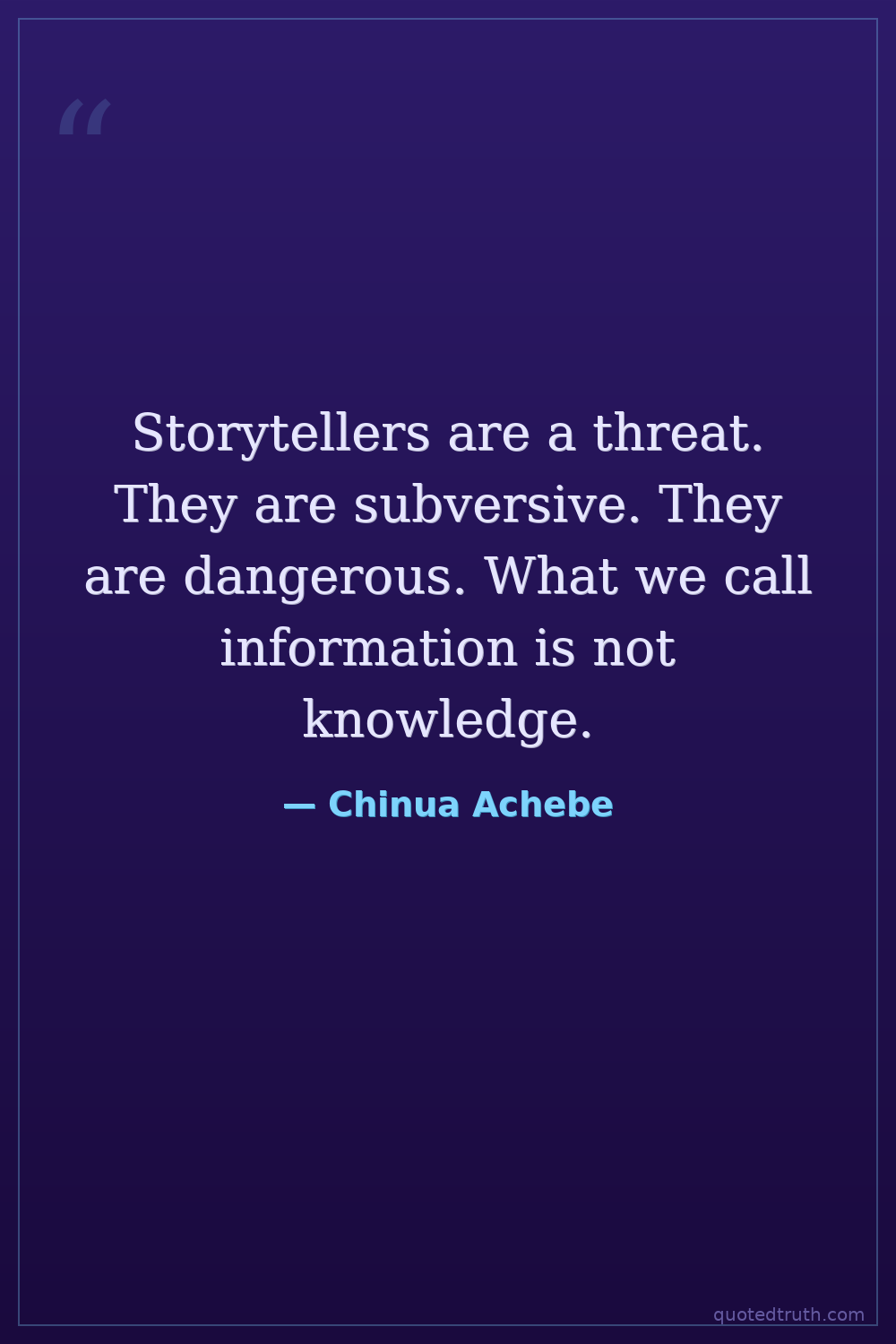 Storytellers are a threat. They are subversive. They are dangerous. What we call information is not knowledge.