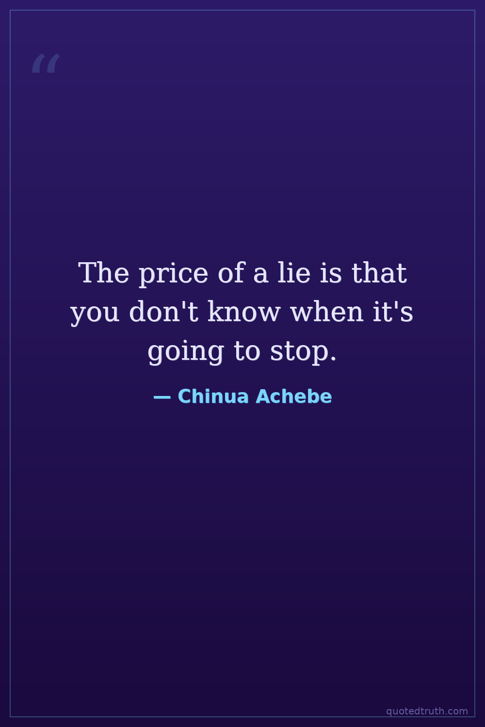 The price of a lie is that you don't know when it's going to stop.