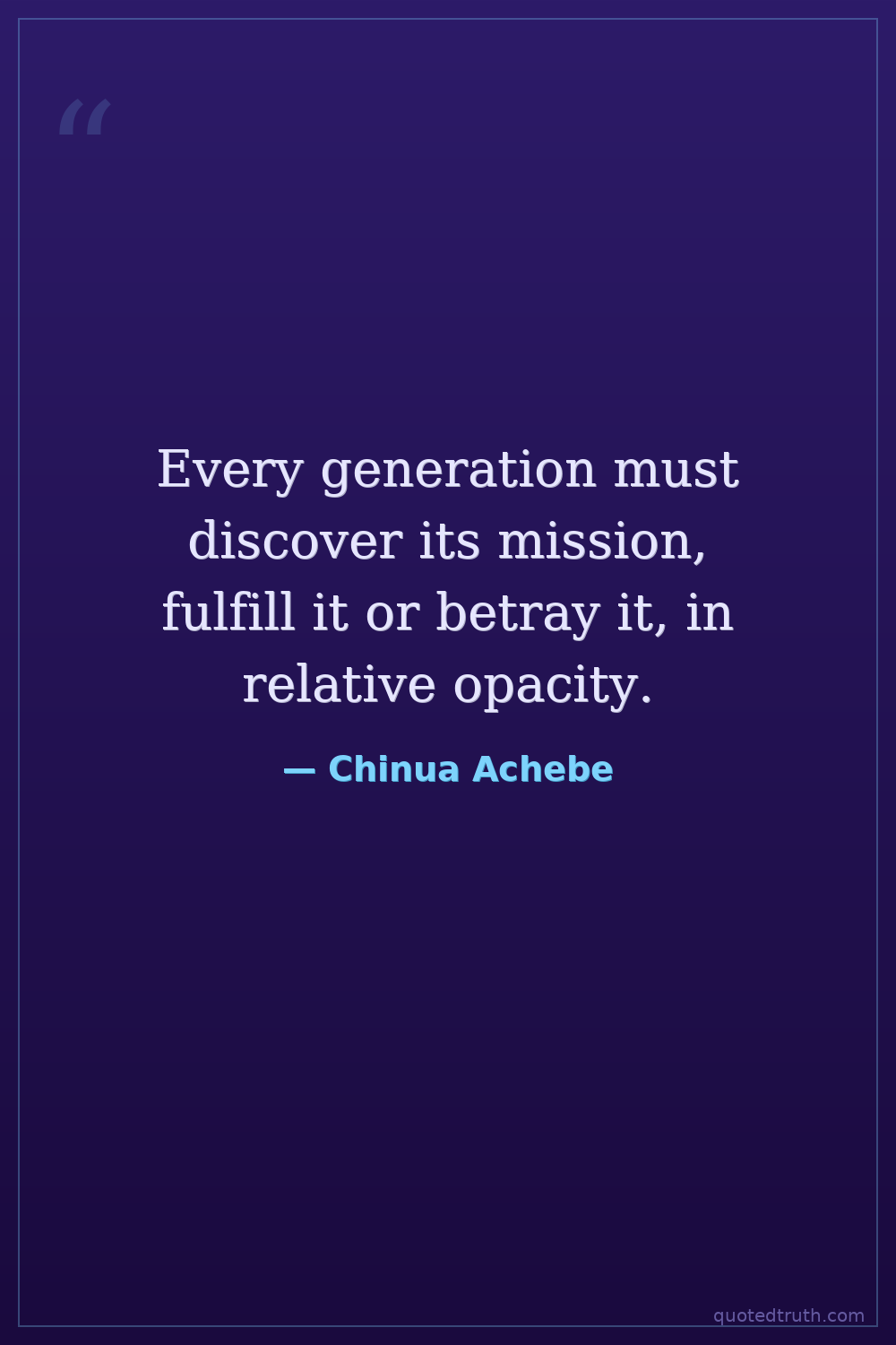 Every generation must discover its mission, fulfill it or betray it, in relative opacity.