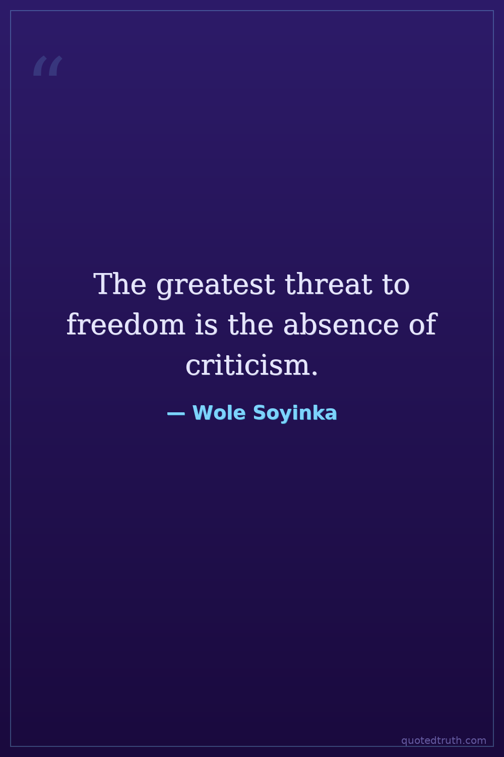 The greatest threat to freedom is the absence of criticism.