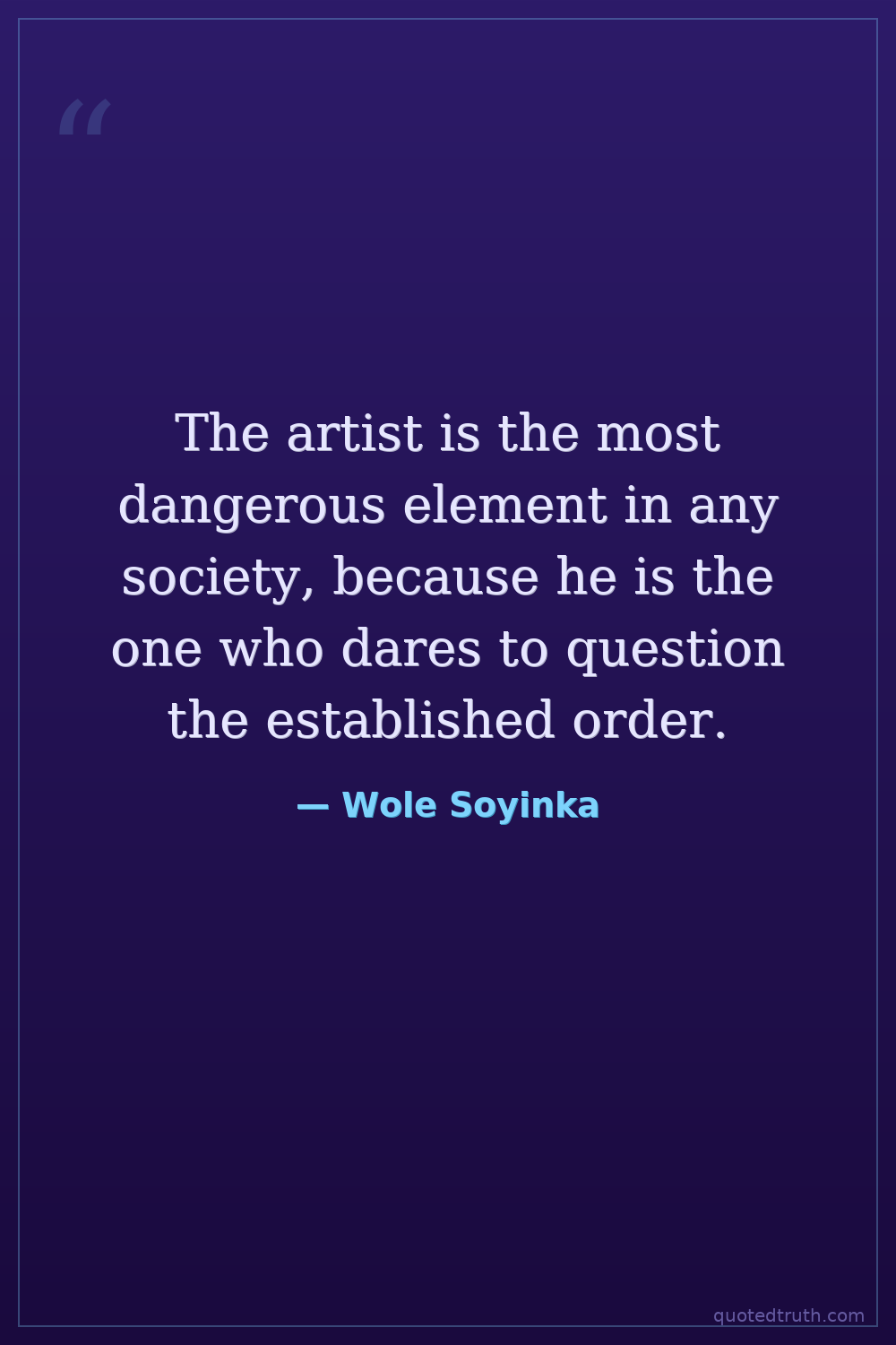 The artist is the most dangerous element in any society, because he is the one who dares to question the established order.