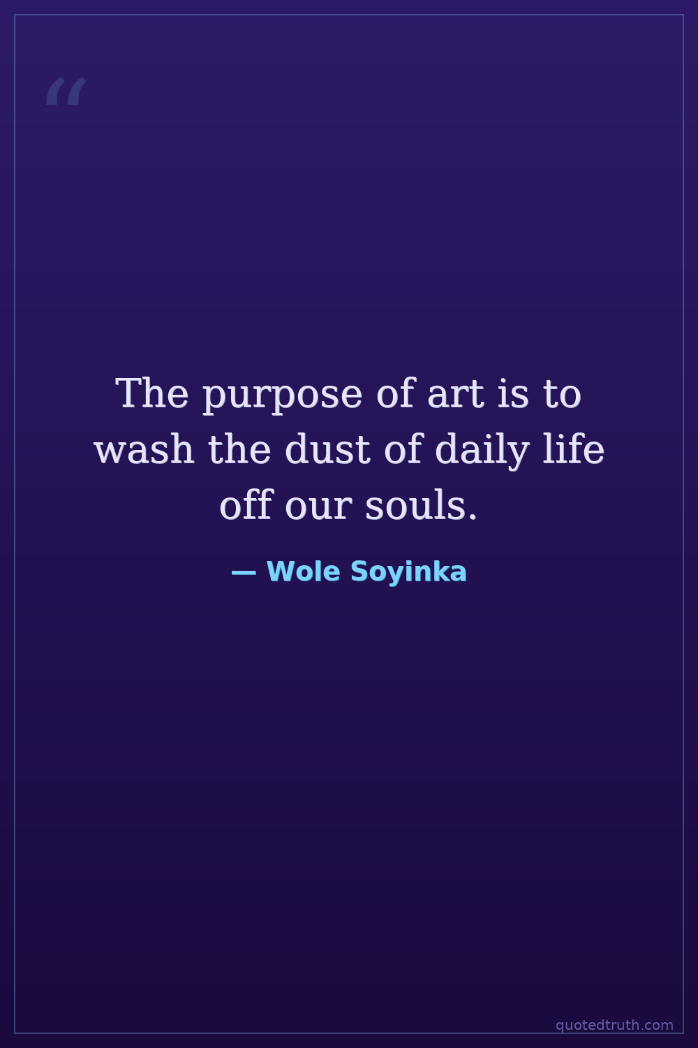The purpose of art is to wash the dust of daily life off our souls.