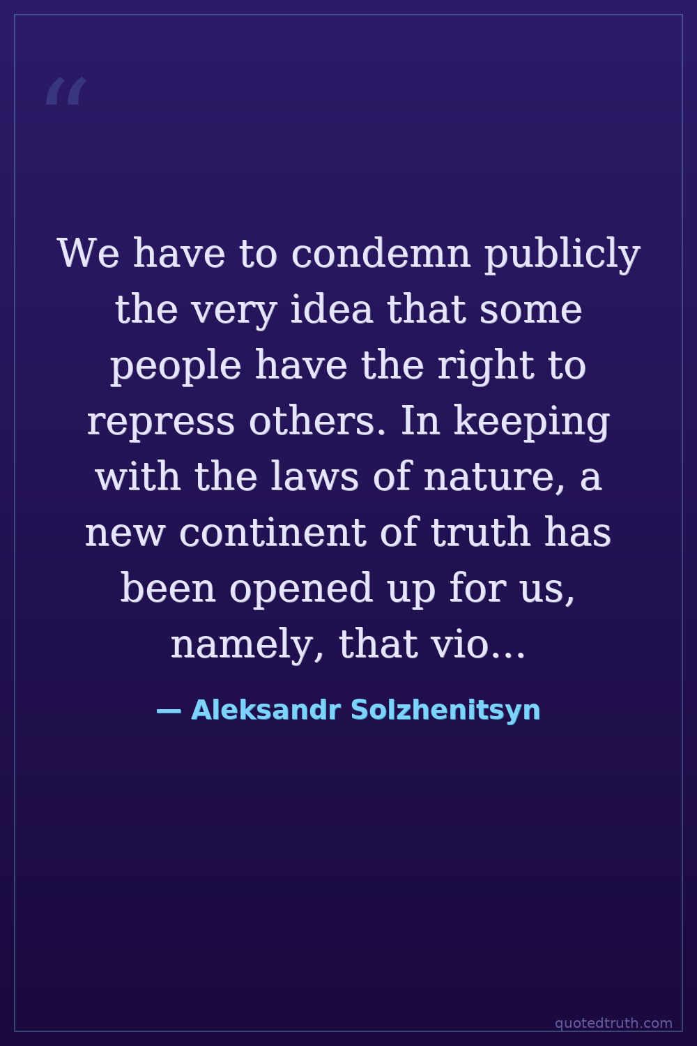 We have to condemn publicly the very idea that some people have the right to repress others. In keeping with the laws of nature, a new continent of truth has been opened up for us, namely, that violence can only be concealed by the lie, and the lie can only be maintained by violence. Any man who has once proclaimed violence as his method is inevitably compelled to choose the lie as his principle.