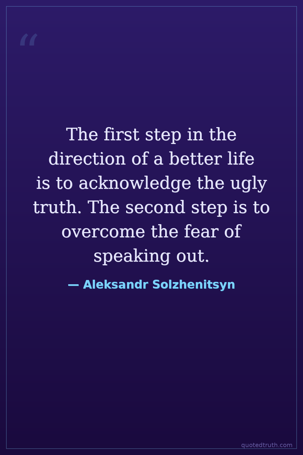 The first step in the direction of a better life is to acknowledge the ugly truth. The second step is to overcome the fear of speaking out.