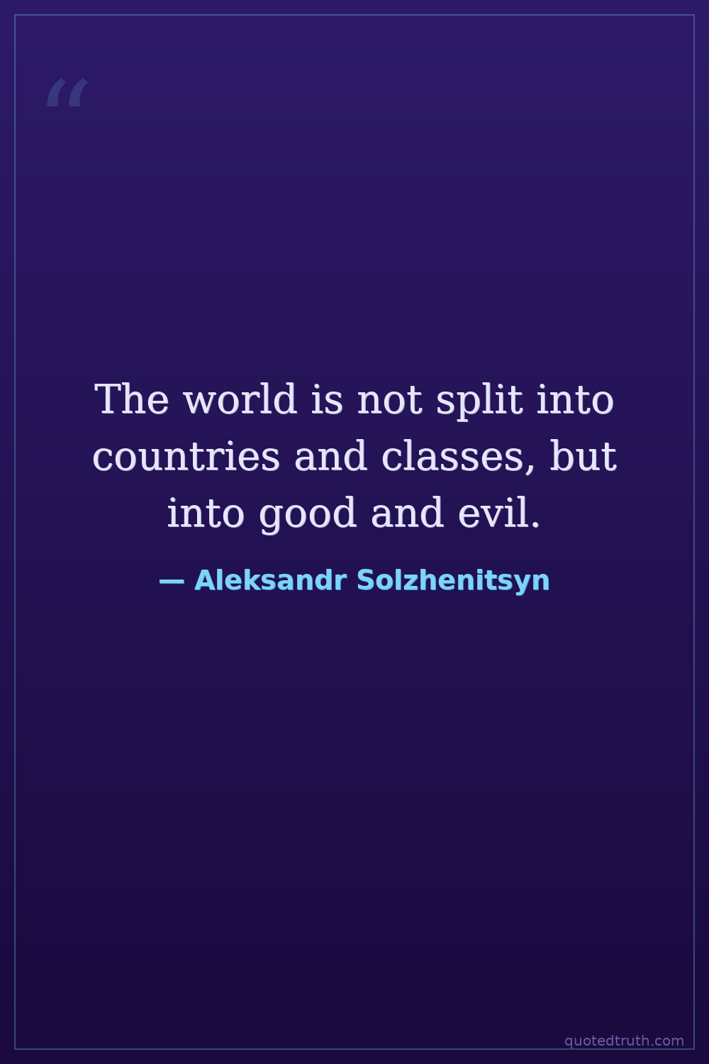 The world is not split into countries and classes, but into good and evil.