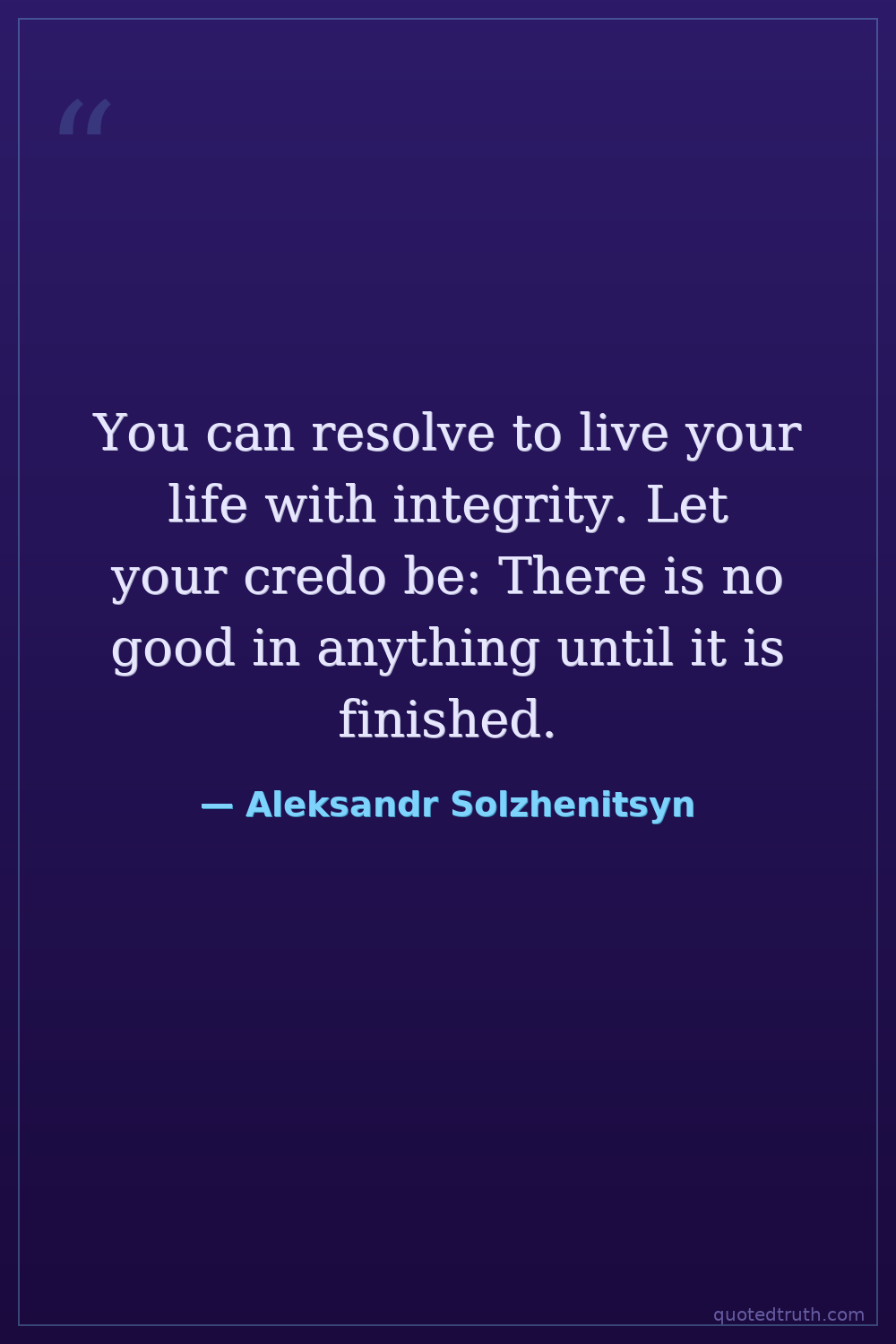 You can resolve to live your life with integrity. Let your credo be: There is no good in anything until it is finished.