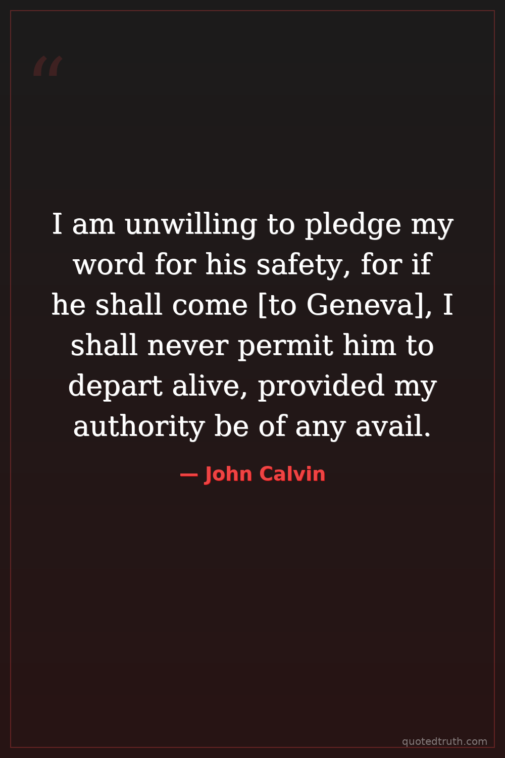 I am unwilling to pledge my word for his safety, for if he shall come [to Geneva], I shall never permit him to depart alive, provided my authority be of any avail.