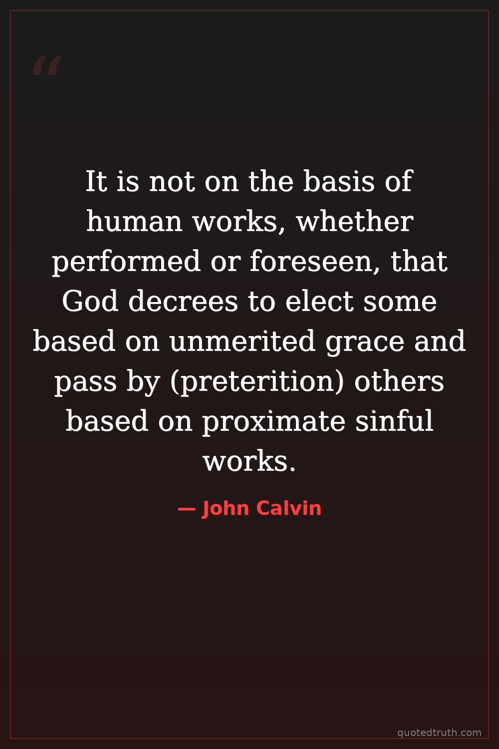 It is not on the basis of human works, whether performed or foreseen, that God decrees to elect some based on unmerited grace and pass by (preterition) others based on proximate sinful works.