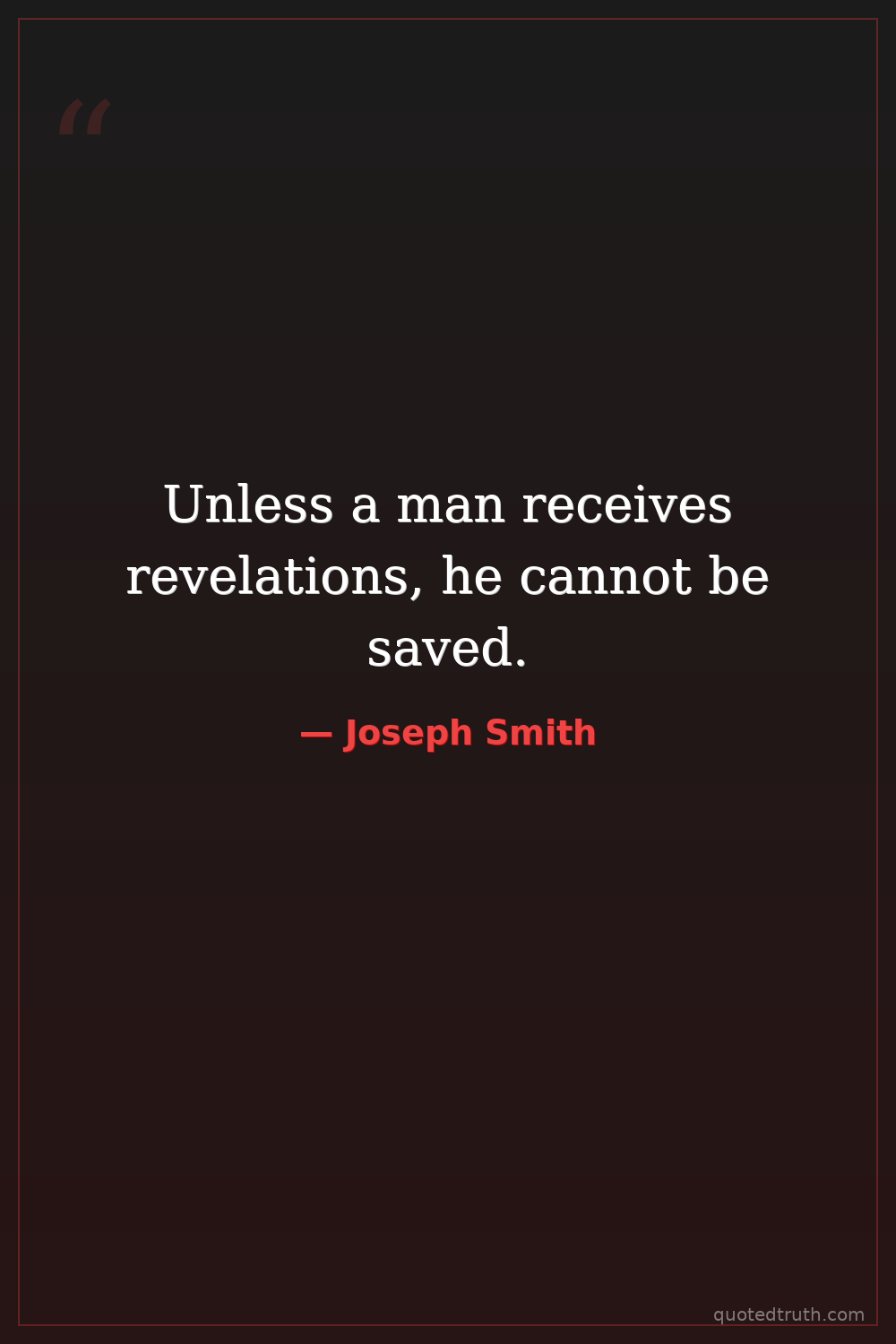Unless a man receives revelations, he cannot be saved.