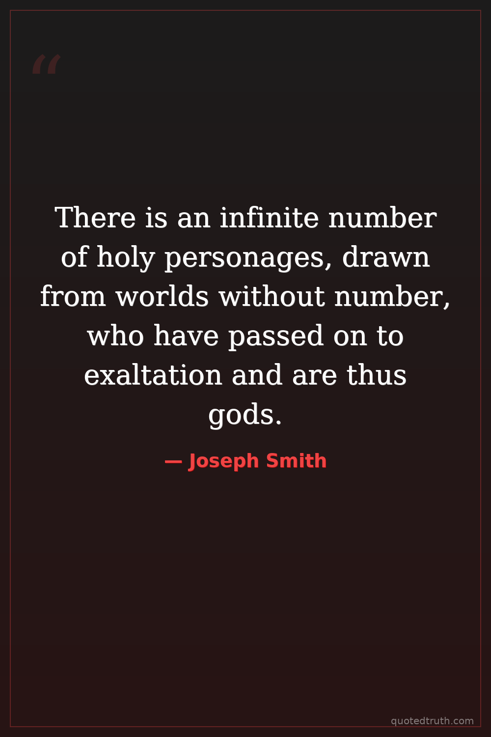 There is an infinite number of holy personages, drawn from worlds without number, who have passed on to exaltation and are thus gods.