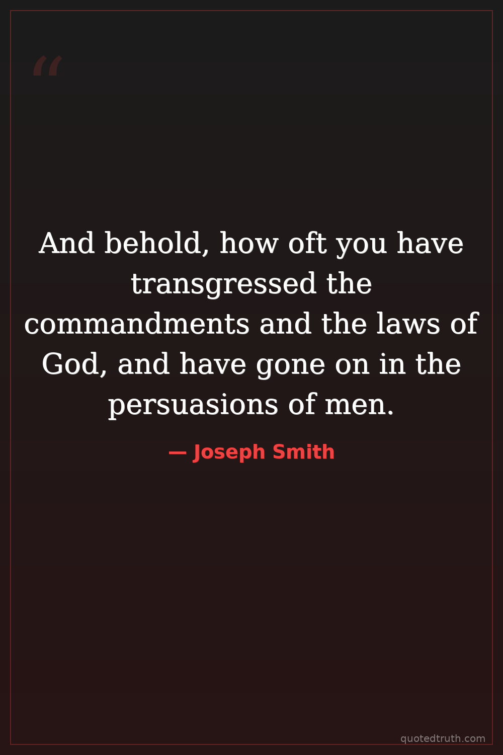 And behold, how oft you have transgressed the commandments and the laws of God, and have gone on in the persuasions of men.
