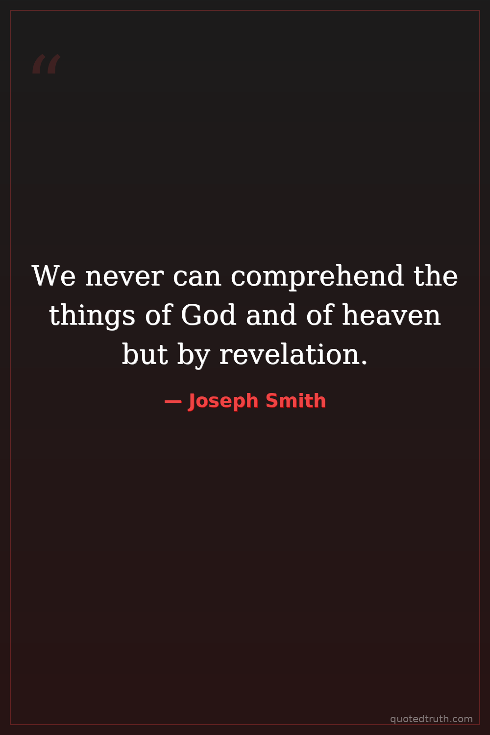 We never can comprehend the things of God and of heaven but by revelation.