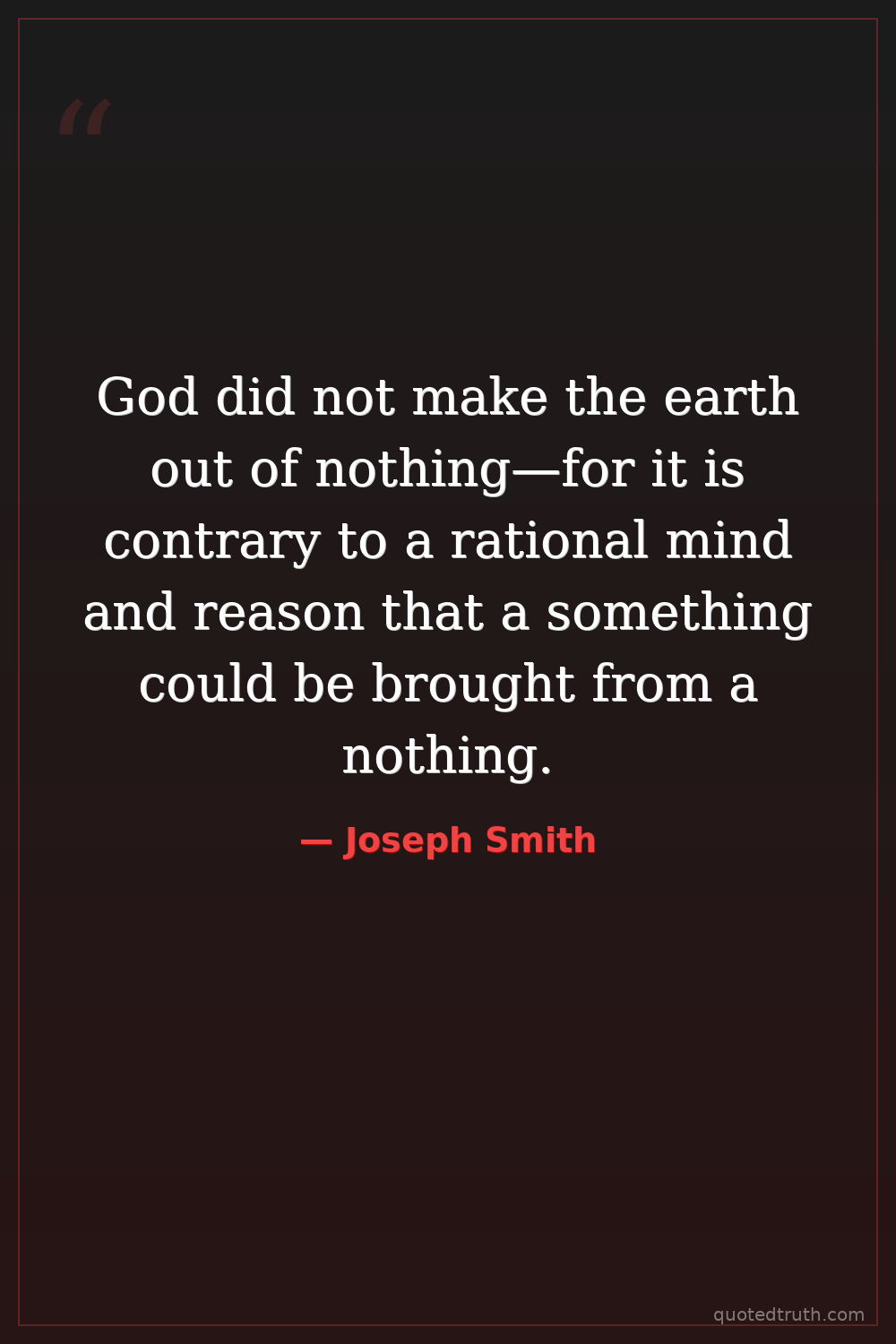 God did not make the earth out of nothing—for it is contrary to a rational mind and reason that a something could be brought from a nothing.