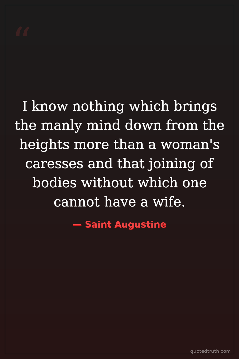 I know nothing which brings the manly mind down from the heights more than a woman's caresses and that joining of bodies without which one cannot have a wife.