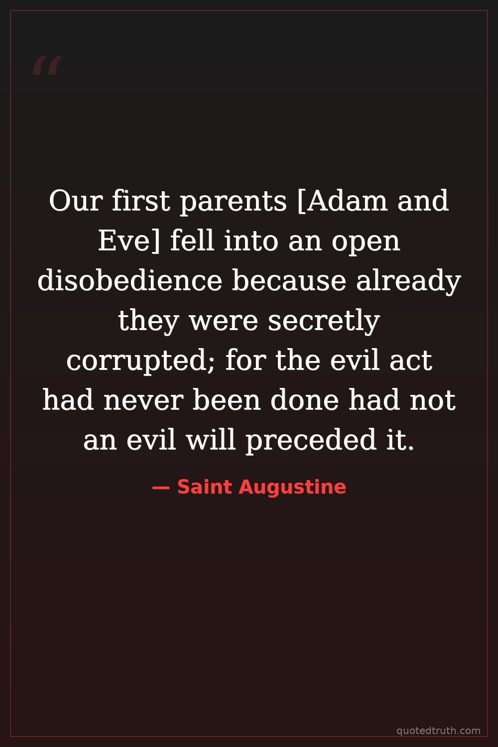 Our first parents [Adam and Eve] fell into an open disobedience because already they were secretly corrupted; for the evil act had never been done had not an evil will preceded it.