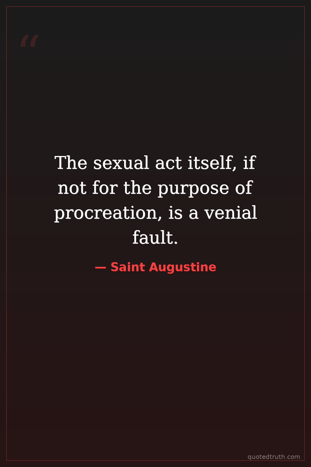 The sexual act itself, if not for the purpose of procreation, is a venial fault.