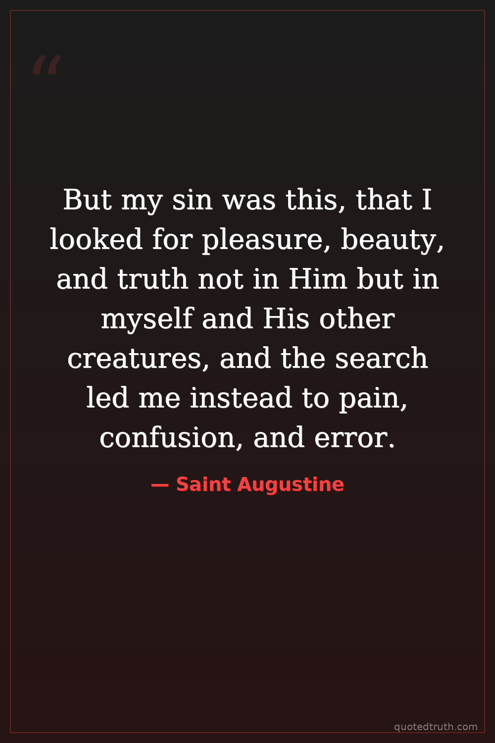 But my sin was this, that I looked for pleasure, beauty, and truth not in Him but in myself and His other creatures, and the search led me instead to pain, confusion, and error.