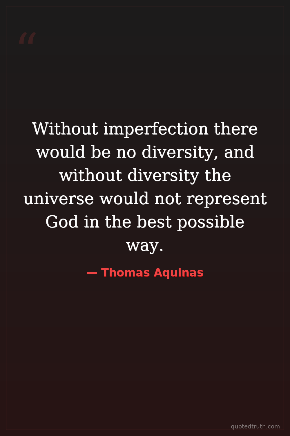 Without imperfection there would be no diversity, and without diversity the universe would not represent God in the best possible way.