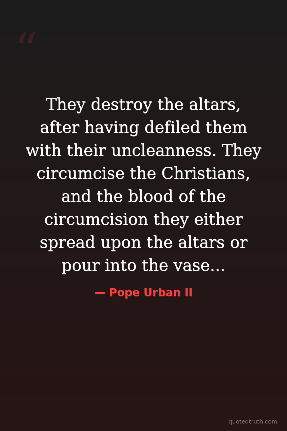 They destroy the altars, after having defiled them with their uncleanness. They circumcise the Christians, and the blood of the circumcision they either spread upon the altars or pour into the vases of the baptismal font.