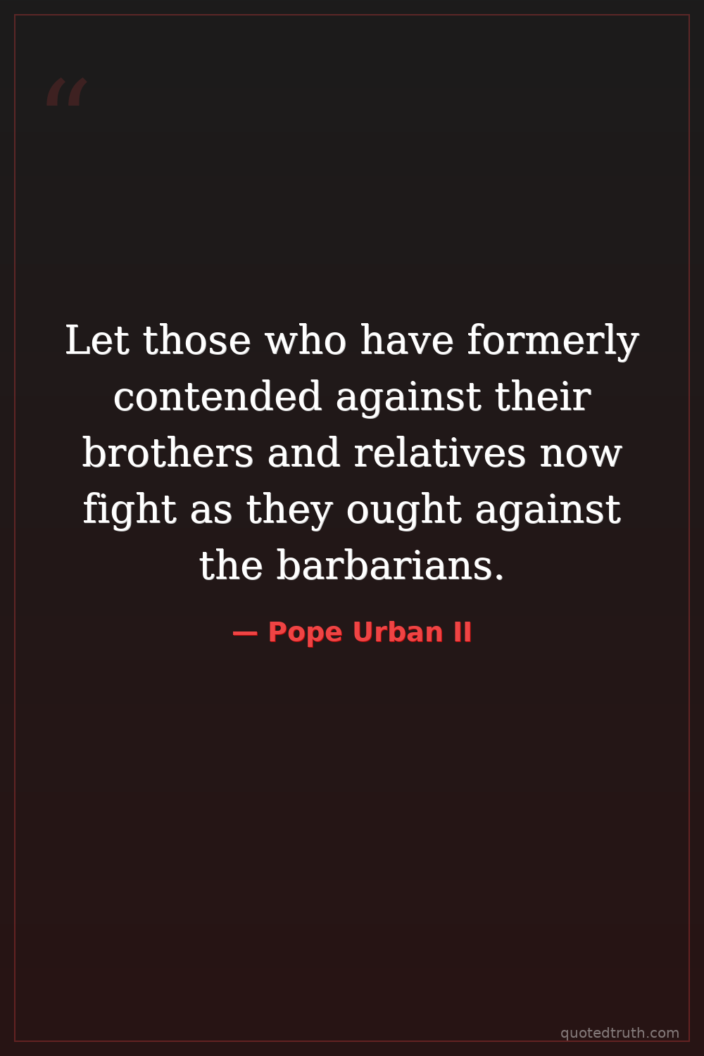 Controversial"Let those who have been accustomed to make private war against the faithful carry on an approved war against the infidels."