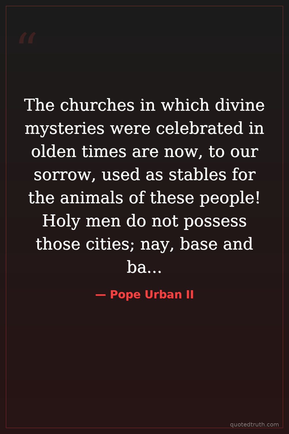 The churches in which divine mysteries were celebrated in olden times are now, to our sorrow, used as stables for the animals of these people! Holy men do not possess those cities; nay, base and bastard Turks hold sway over our brothers.