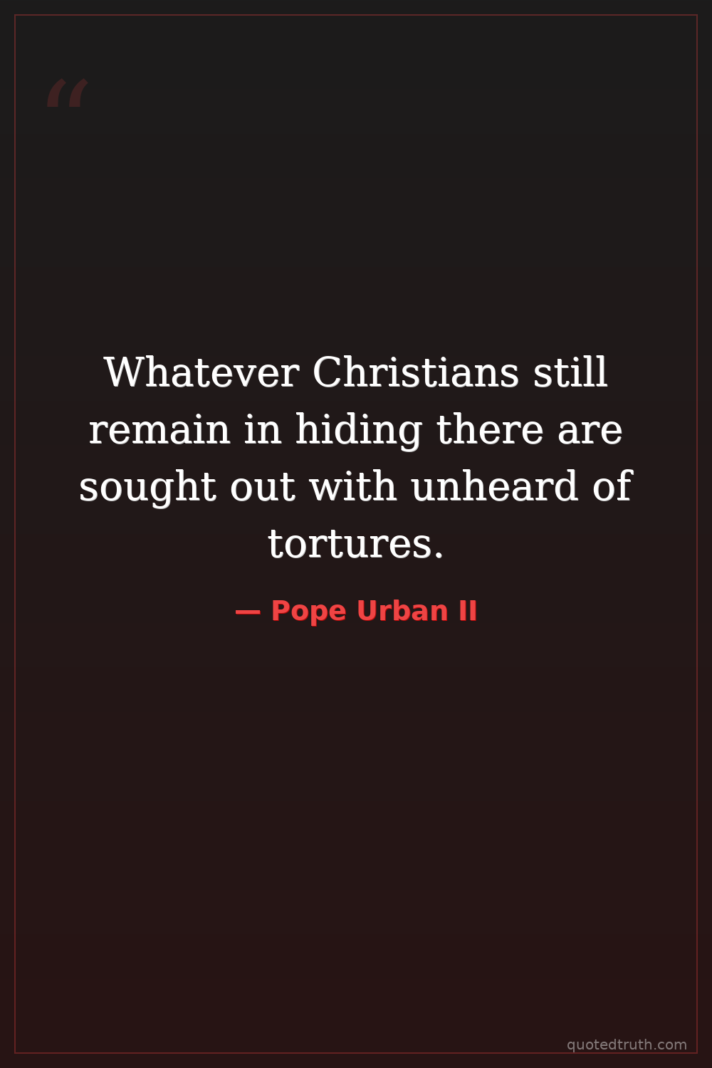 Shocking"It is no longer a matter of avenging just the injuries made to men, but rather those made to God. It is no longer a matter of attacking a city or a castle, but of conquering the Holy Places. If you tr…"