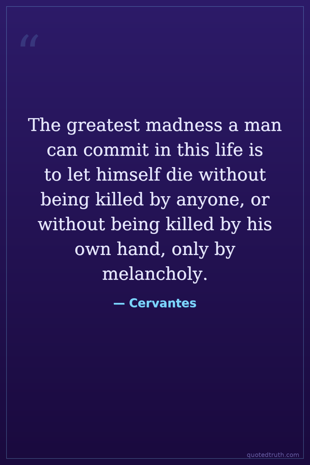 The greatest madness a man can commit in this life is to let himself die without being killed by anyone, or without being killed by his own hand, only by melancholy.