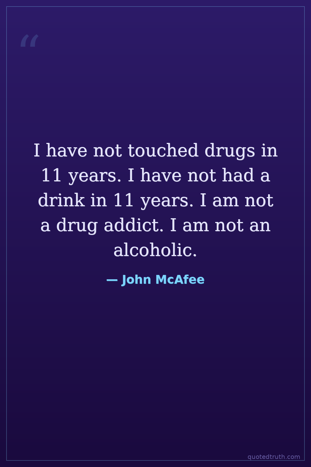 I have not touched drugs in 11 years. I have not had a drink in 11 years. I am not a drug addict. I am not an alcoholic.