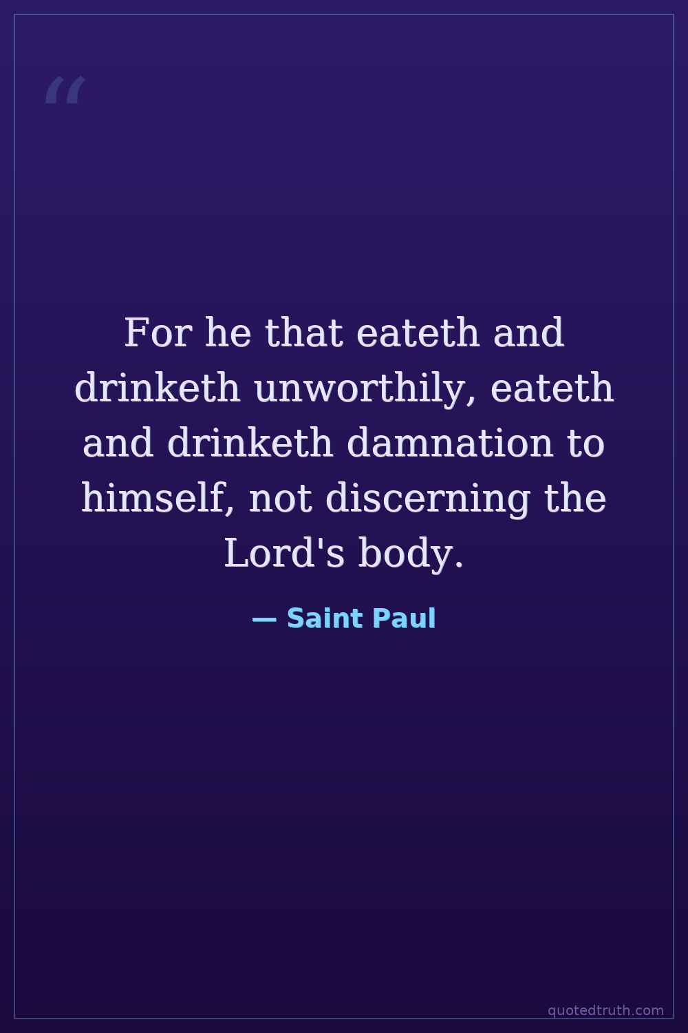 For he that eateth and drinketh unworthily, eateth and drinketh damnation to himself, not discerning the Lord's body.