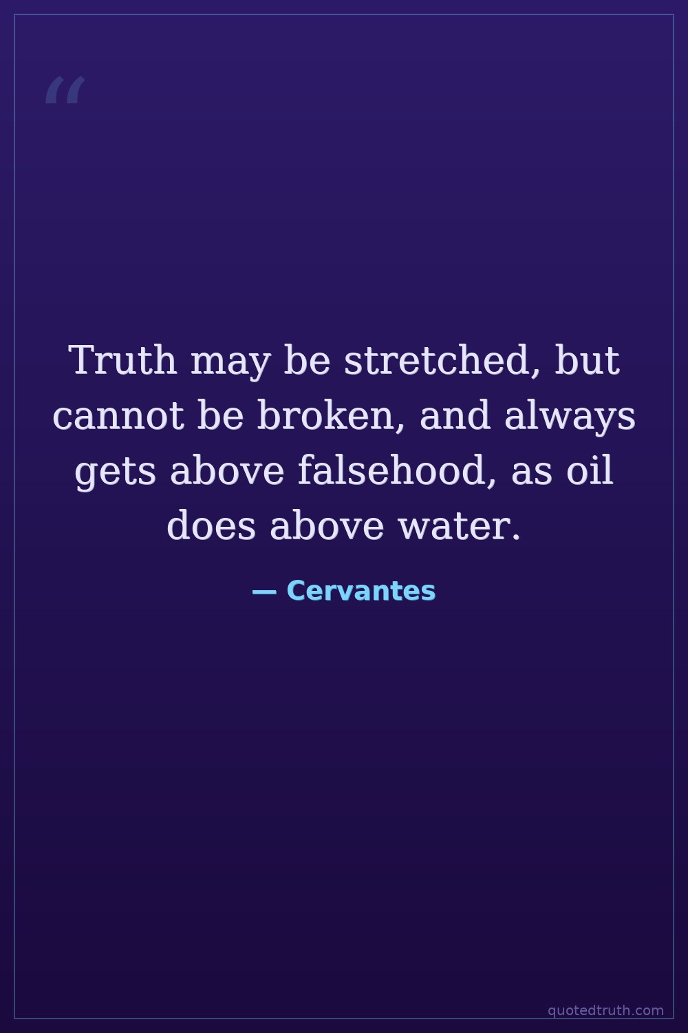 Truth may be stretched, but cannot be broken, and always gets above falsehood, as oil does above water.