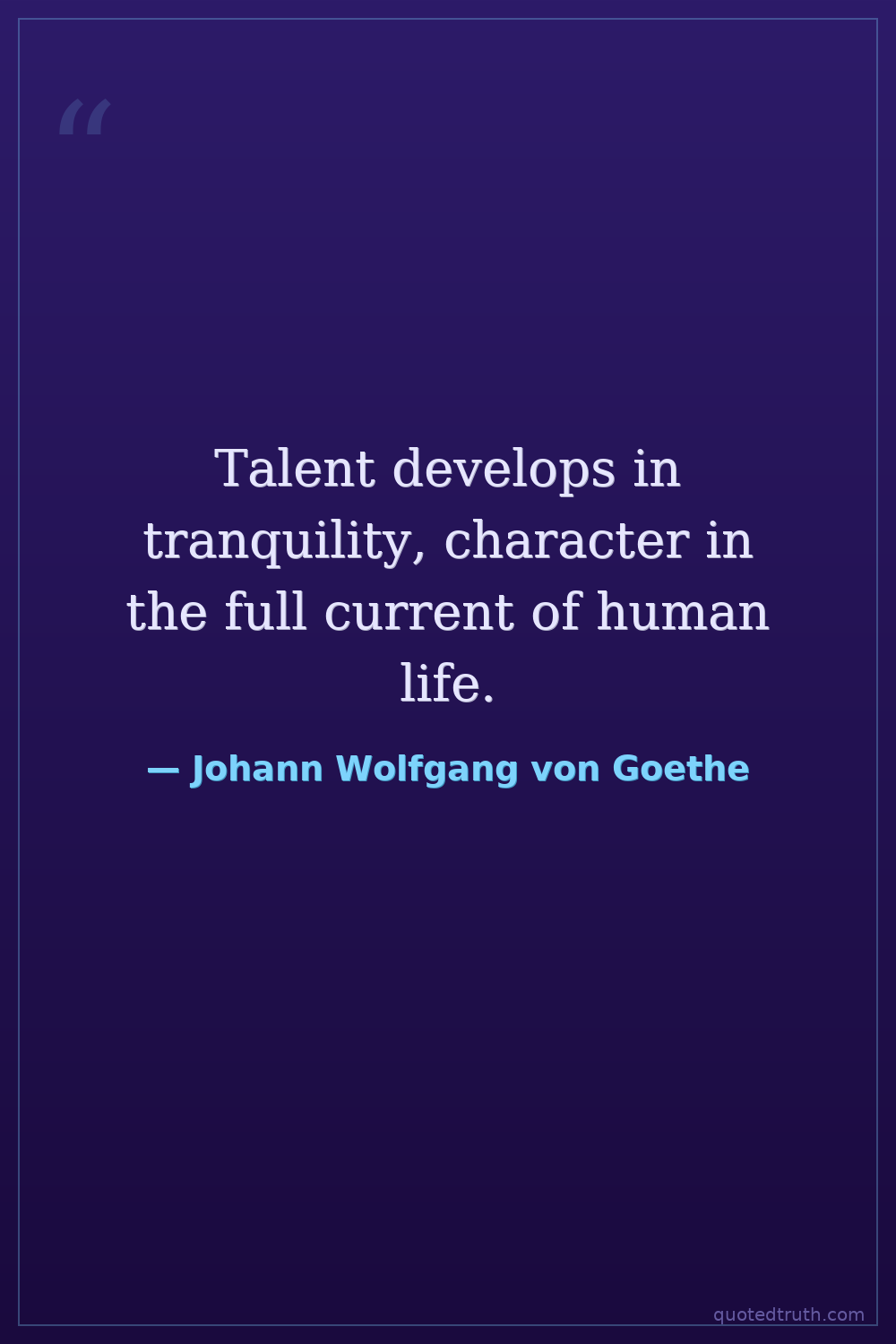 Talent develops in tranquility, character in the full current of human life.