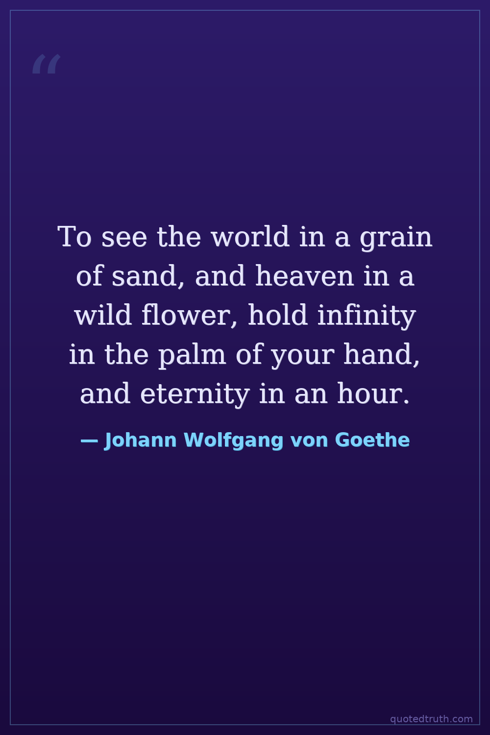 To see the world in a grain of sand, and heaven in a wild flower, hold infinity in the palm of your hand, and eternity in an hour.