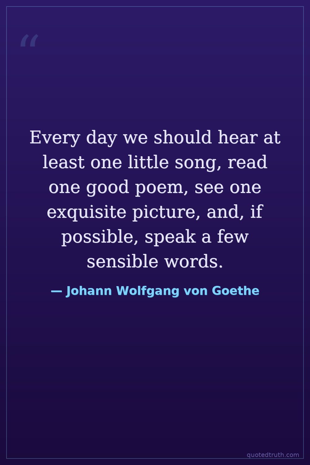 Every day we should hear at least one little song, read one good poem, see one exquisite picture, and, if possible, speak a few sensible words.