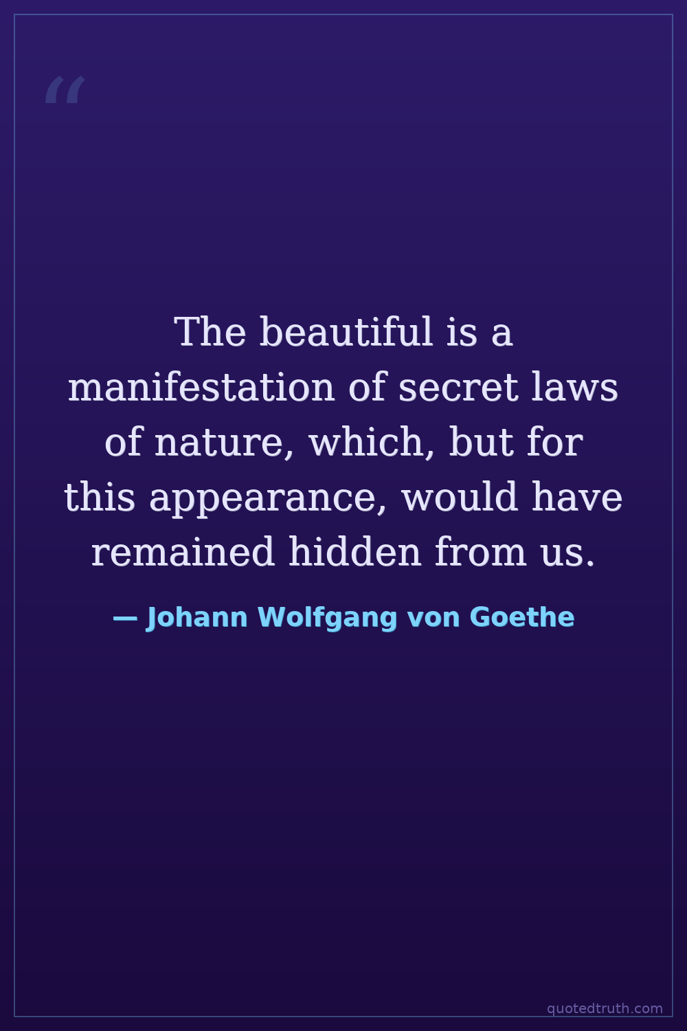 The beautiful is a manifestation of secret laws of nature, which, but for this appearance, would have remained hidden from us.