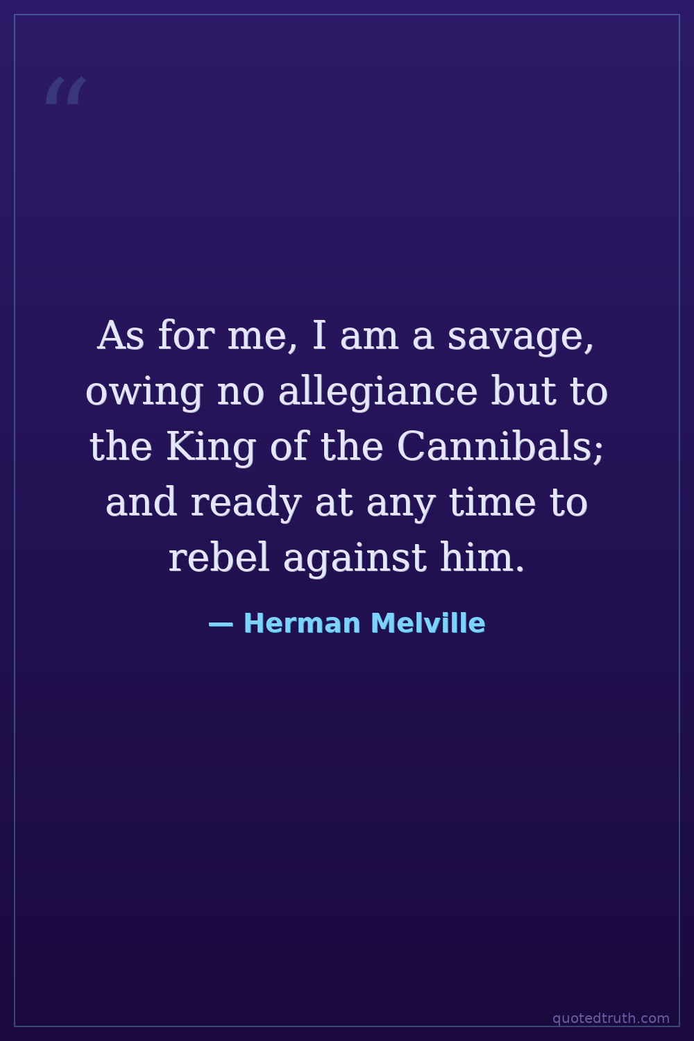 As for me, I am a savage, owing no allegiance but to the King of the Cannibals; and ready at any time to rebel against him.