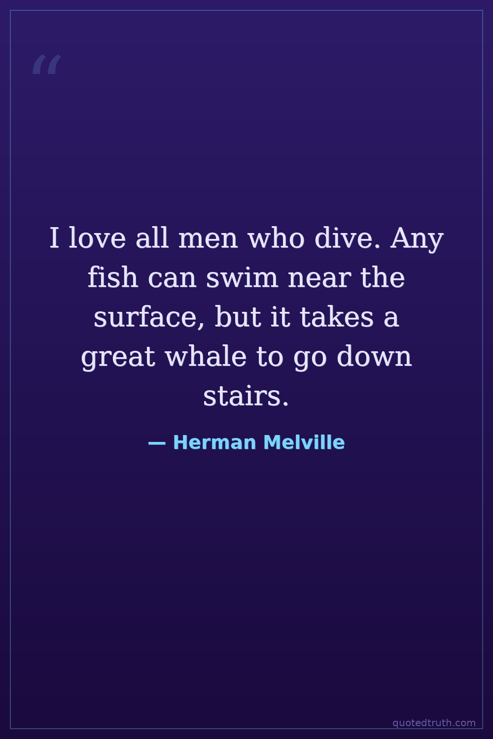 I love all men who dive. Any fish can swim near the surface, but it takes a great whale to go down stairs.