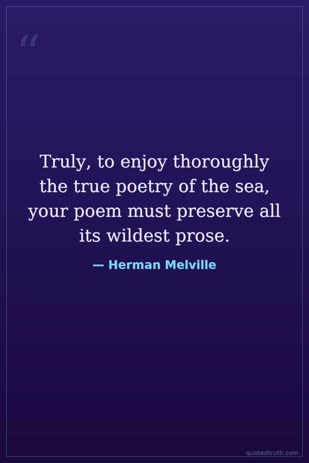 Truly, to enjoy thoroughly the true poetry of the sea, your poem must preserve all its wildest prose.