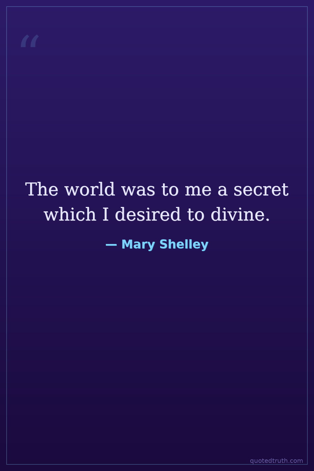 The world was to me a secret which I desired to divine.