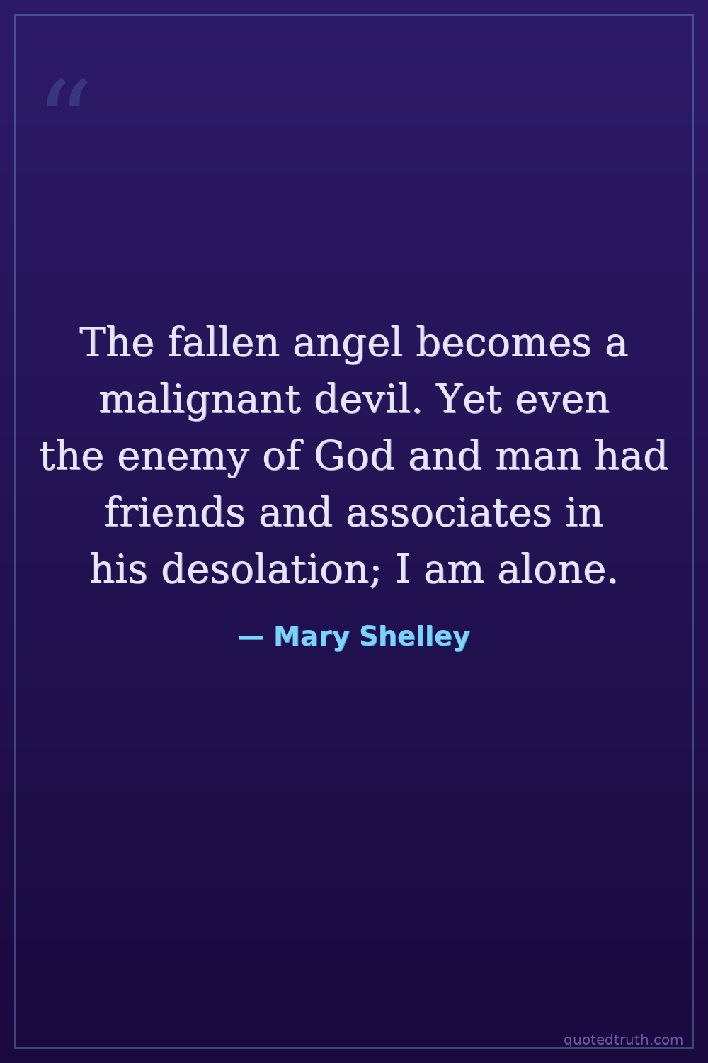 The fallen angel becomes a malignant devil. Yet even the enemy of God and man had friends and associates in his desolation; I am alone.