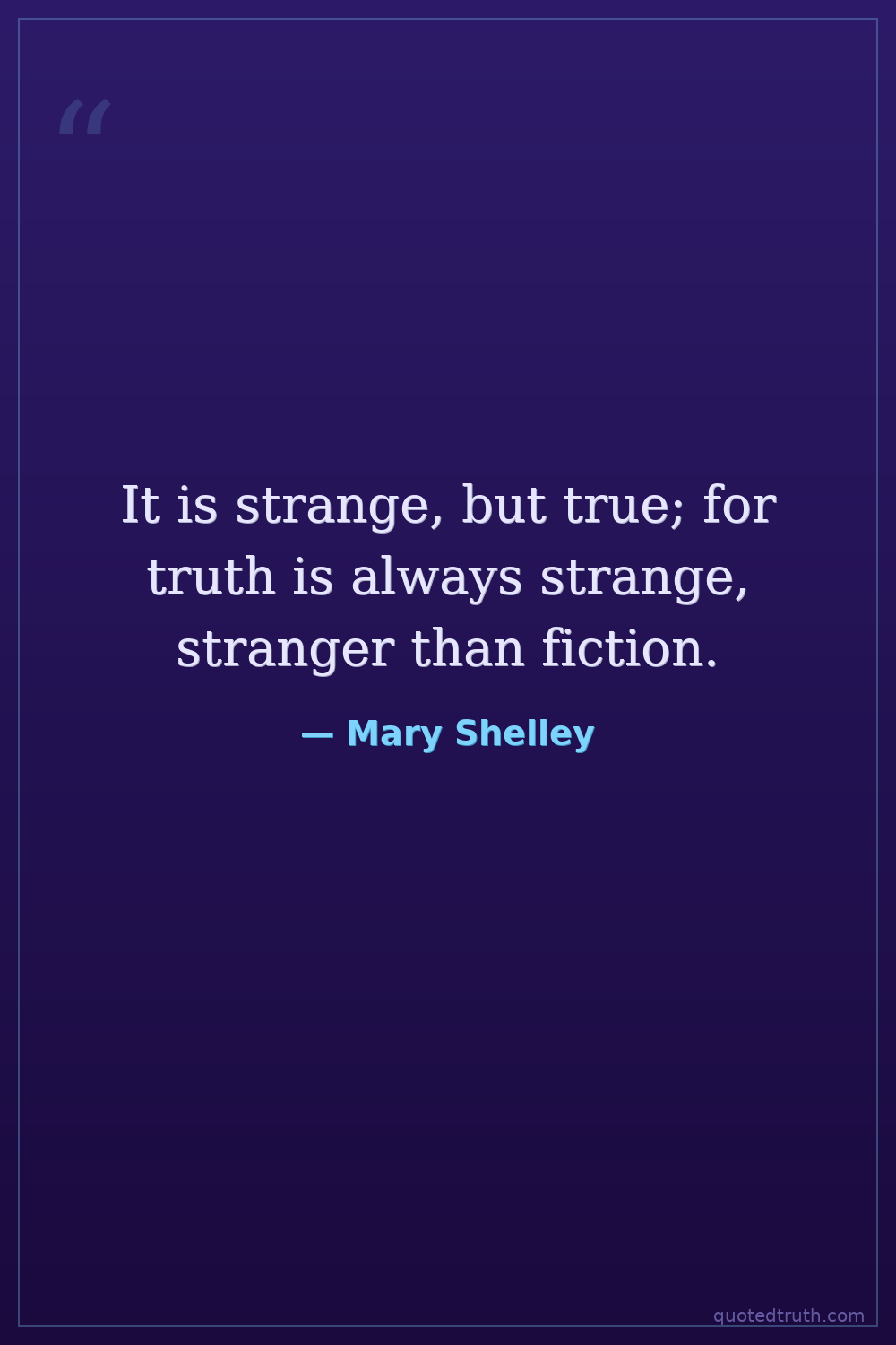 It is strange, but true; for truth is always strange, stranger than fiction.