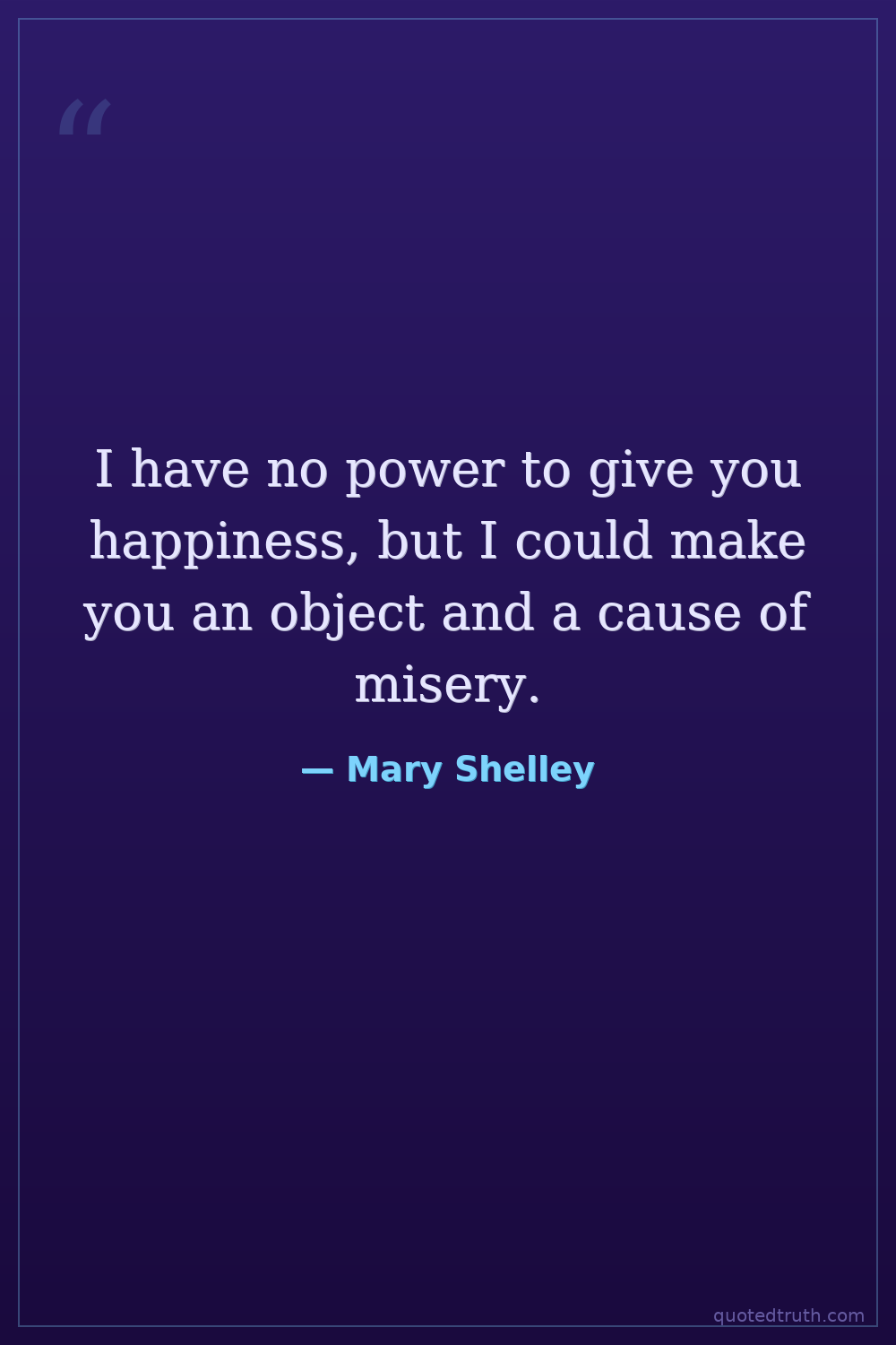 I have no power to give you happiness, but I could make you an object and a cause of misery.