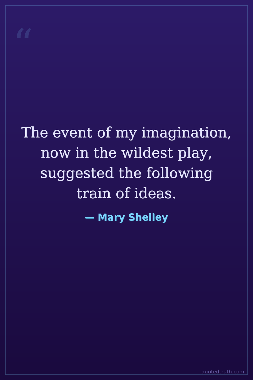 The event of my imagination, now in the wildest play, suggested the following train of ideas.
