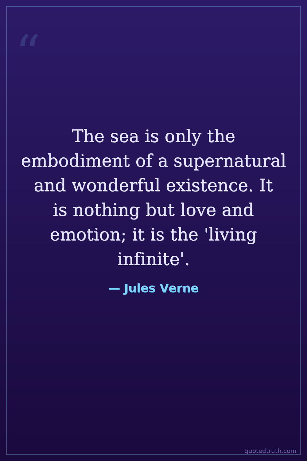 The sea is only the embodiment of a supernatural and wonderful existence. It is nothing but love and emotion; it is the 'living infinite'.
