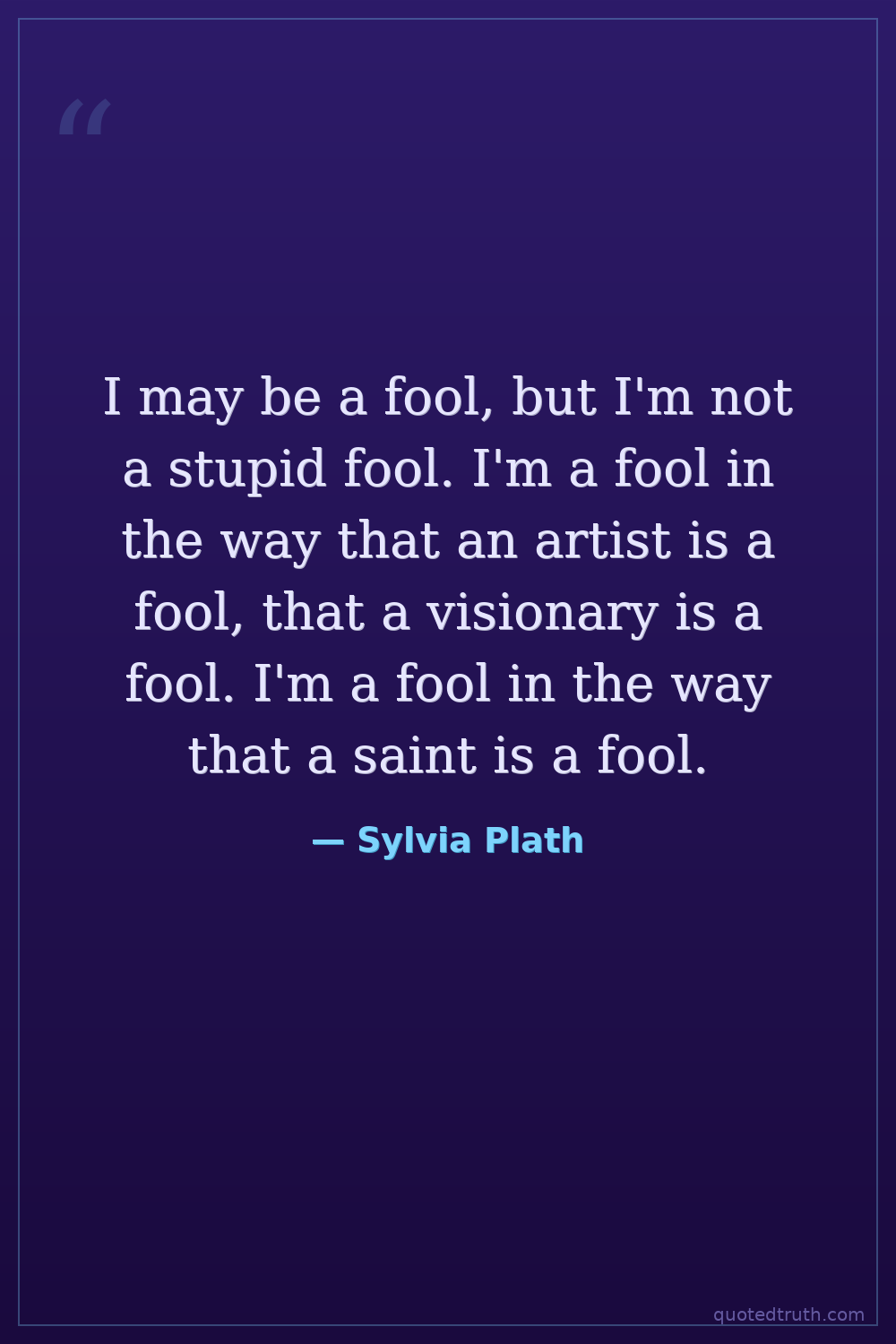 I may be a fool, but I'm not a stupid fool. I'm a fool in the way that an artist is a fool, that a visionary is a fool. I'm a fool in the way that a saint is a fool.