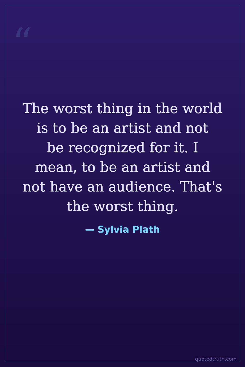 The worst thing in the world is to be an artist and not be recognized for it. I mean, to be an artist and not have an audience. That's the worst thing.