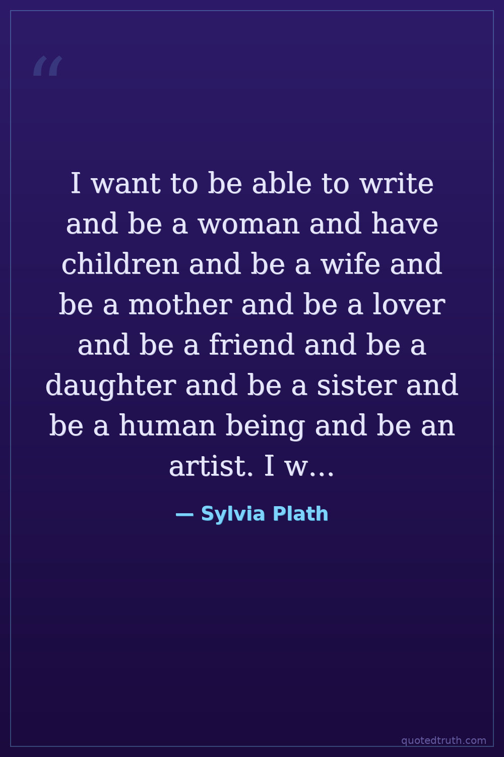 I want to be able to write and be a woman and have children and be a wife and be a mother and be a lover and be a friend and be a daughter and be a sister and be a human being and be an artist. I want to be all those things.