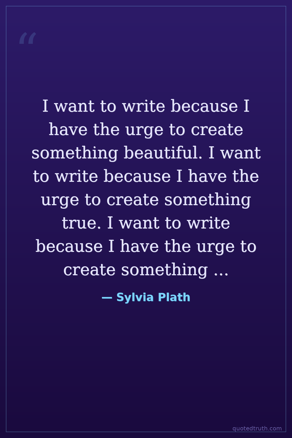 I want to write because I have the urge to create something beautiful. I want to write because I have the urge to create something true. I want to write because I have the urge to create something meaningful.