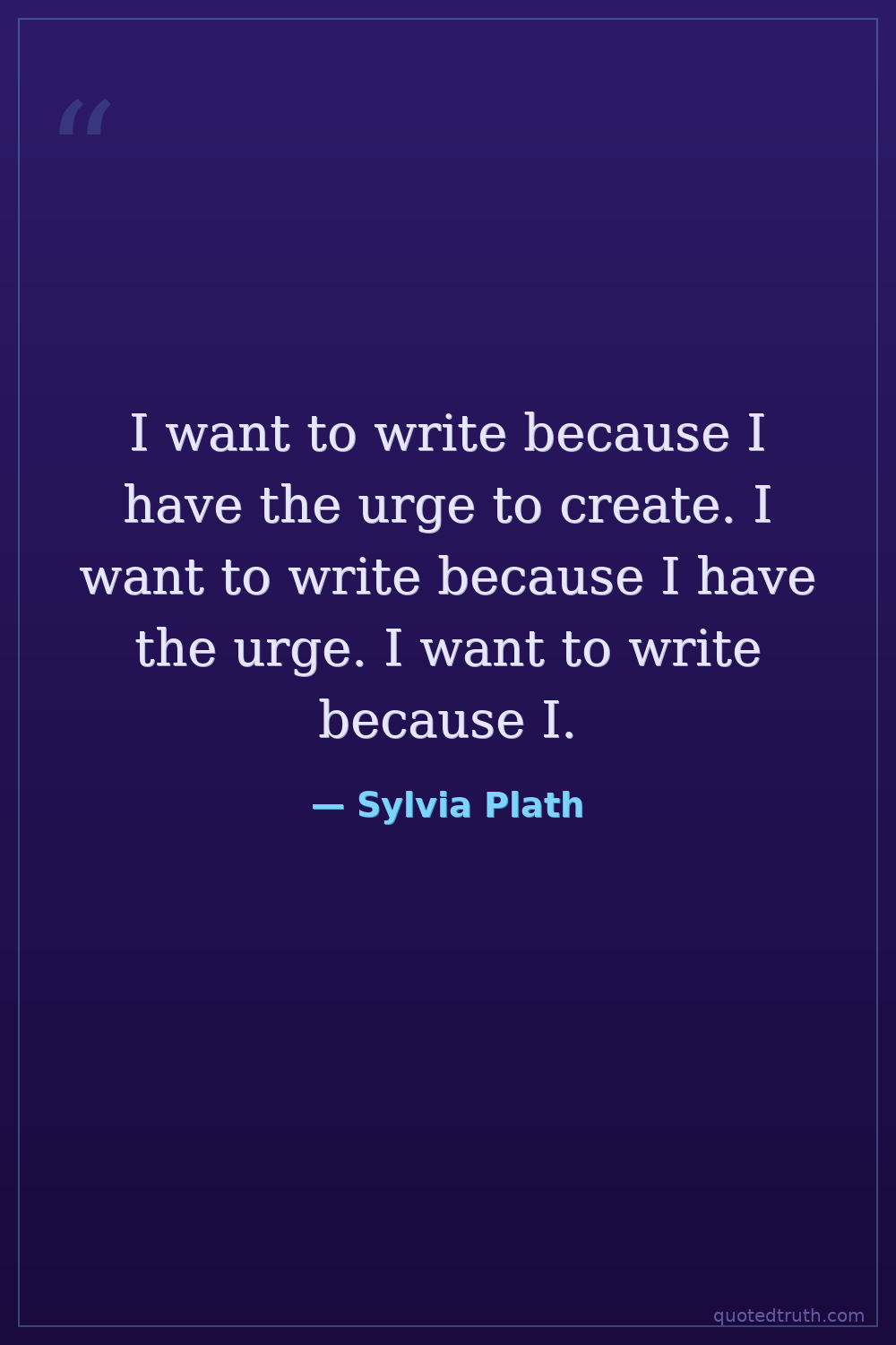 I want to write because I have the urge to create. I want to write because I have the urge. I want to write because I.