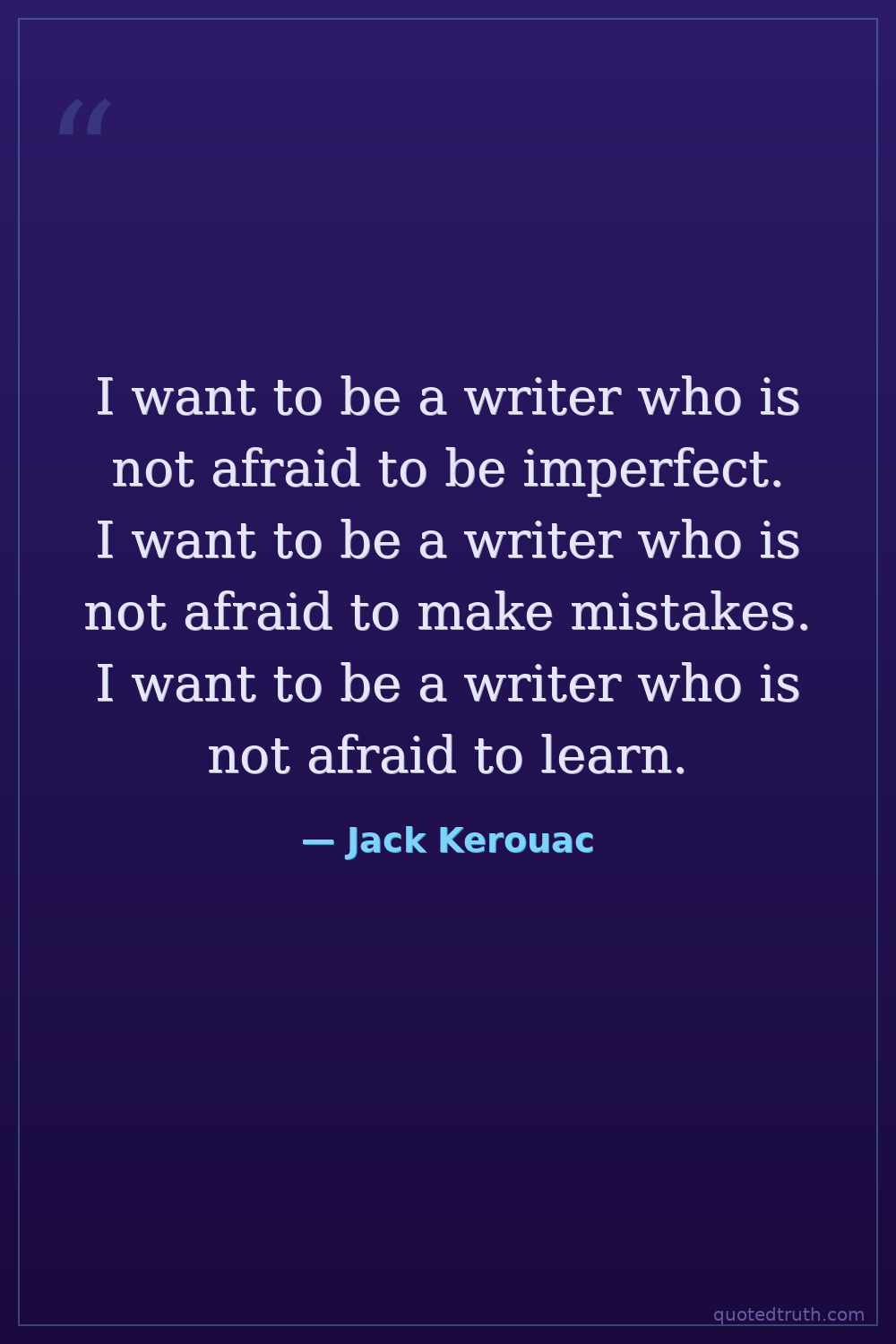 I want to be a writer who is not afraid to be imperfect. I want to be a writer who is not afraid to make mistakes. I want to be a writer who is not afraid to learn.